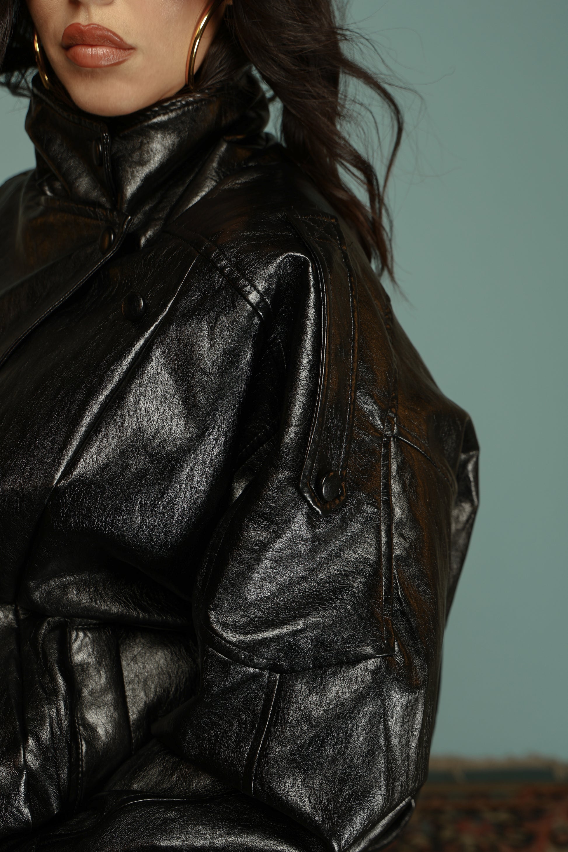 Il Biker London Nero rappresenta l'essenza dello stile urbano contemporaneo. Realizzato in ecopelle di qualità, offre una vestibilità over che garantisce comfort e movimento. I dettagli sofisticati includono bottoni sulle spalle che aggiungono carattere, tasche laterali funzionali e un elastico sul fondo per una silhouette definita. L'abbottonatura con zip frontale combina praticità e estetica, mentre la fodera interna assicura comfort durante l'uso. Un capo versatile che eleva qualsiasi outfit con il suo design moderno e consapevole.