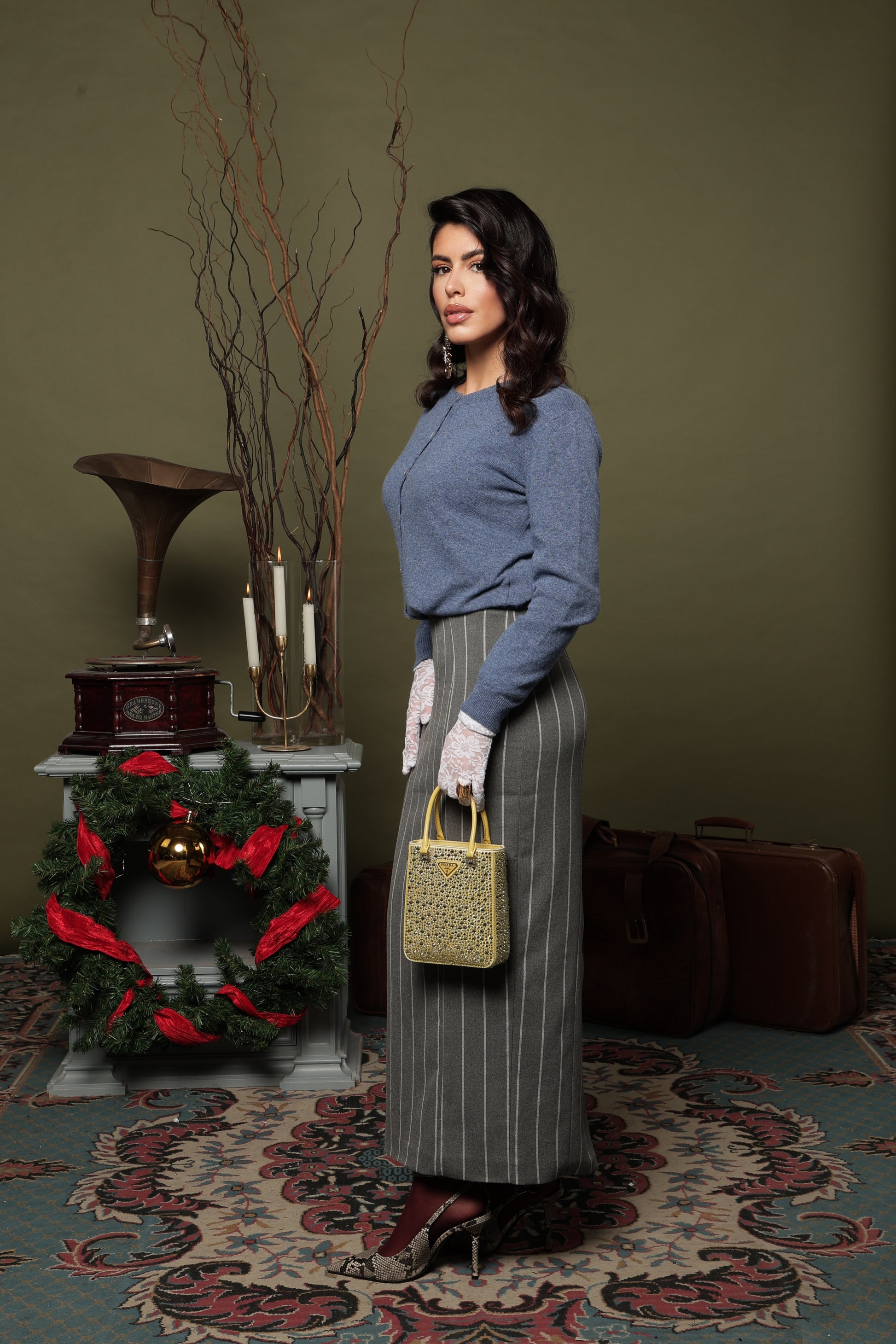 La gonna midi Alia è un capo versatile che unisce eleganza e praticità. Caratterizzata da un bustino strutturato in vita che definisce la silhouette, presenta riprese sul davanti per un effetto sagomate e affusolato. La chiusura con lampo invisibile sul retro garantisce una vestibilità impeccabile, mentre lo spacco posteriore assicura libertà di movimento. Completamente fodera internamente, questa gonna si adatta perfettamente sia a occasioni quotidiane che a momenti più formali, diventando un elemento essenziale del guardaroba.