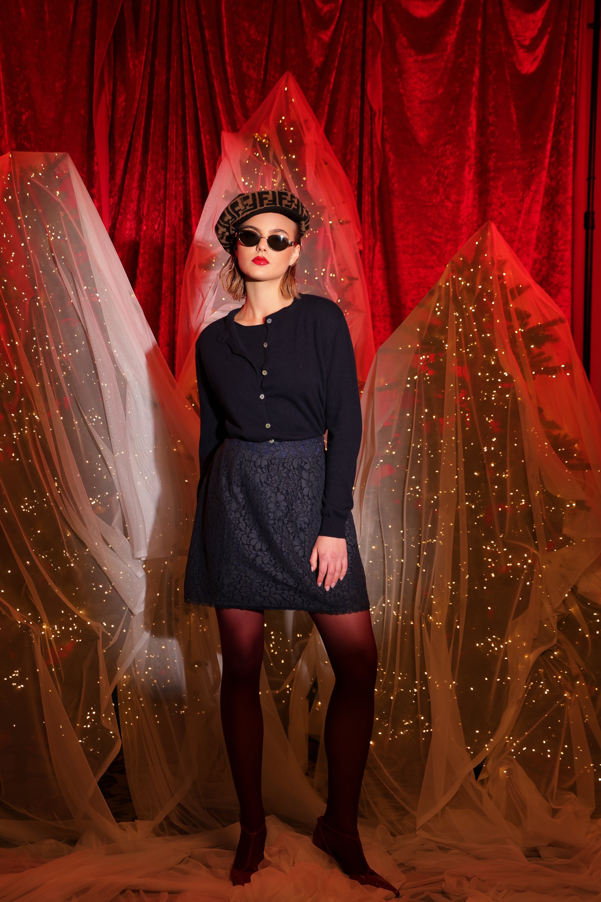 Elegante mini gonna in pizzo romantico con design sofisticato che esalta la silhouette. Caratterizzata da dettagli in pizzo cigliato sul fondo che aggiungono movimento e femminilità, presenta un bustino strutturato in vita per una vestibilità impeccabile. La chiusura lampo invisibile e il gancio sul retro garantiscono praticità e una linea pulita. Un capo versatile che combina raffinatezza e comfort, perfetto per occasioni speciali o per chi desidera un tocco di eleganza nel proprio guardaroba.
