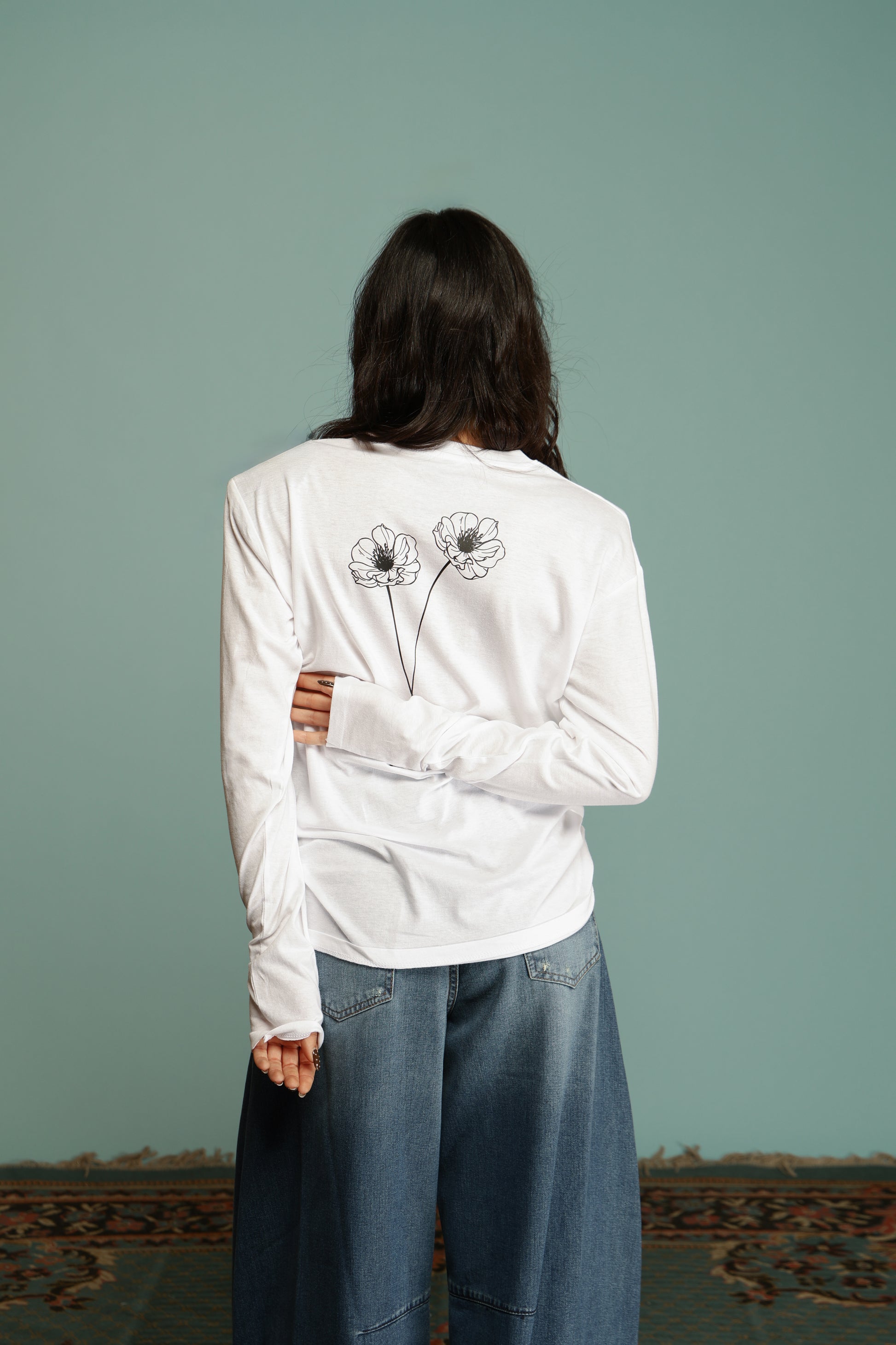T-shirt in cotone 100% con vestibilità oversize e spalline imbottite per massimo comfort. Caratterizzata dal logo scritta "dosfloritas" sul lato cuore e da una suggestiva stampa maxi papavero sulla schiena. Taglia unica che si adatta a diverse morfologie. Un capo versatile che unisce semplicità e carattere, perfetto per chi ricerca qualità e stile contemporaneo.