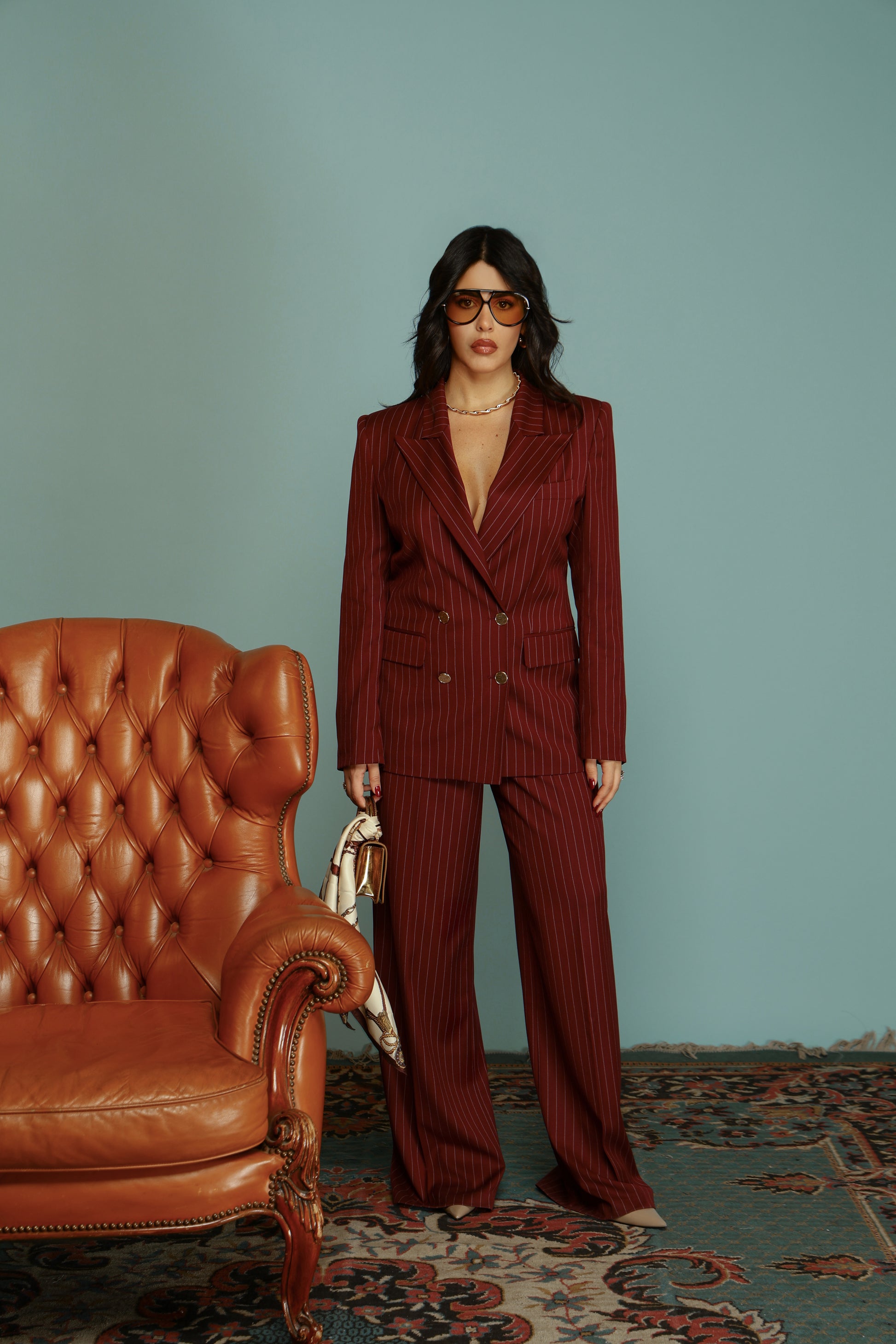 TAILLEUR DOPPIO PETTO GESSATO OLIVIA BORDEAUX